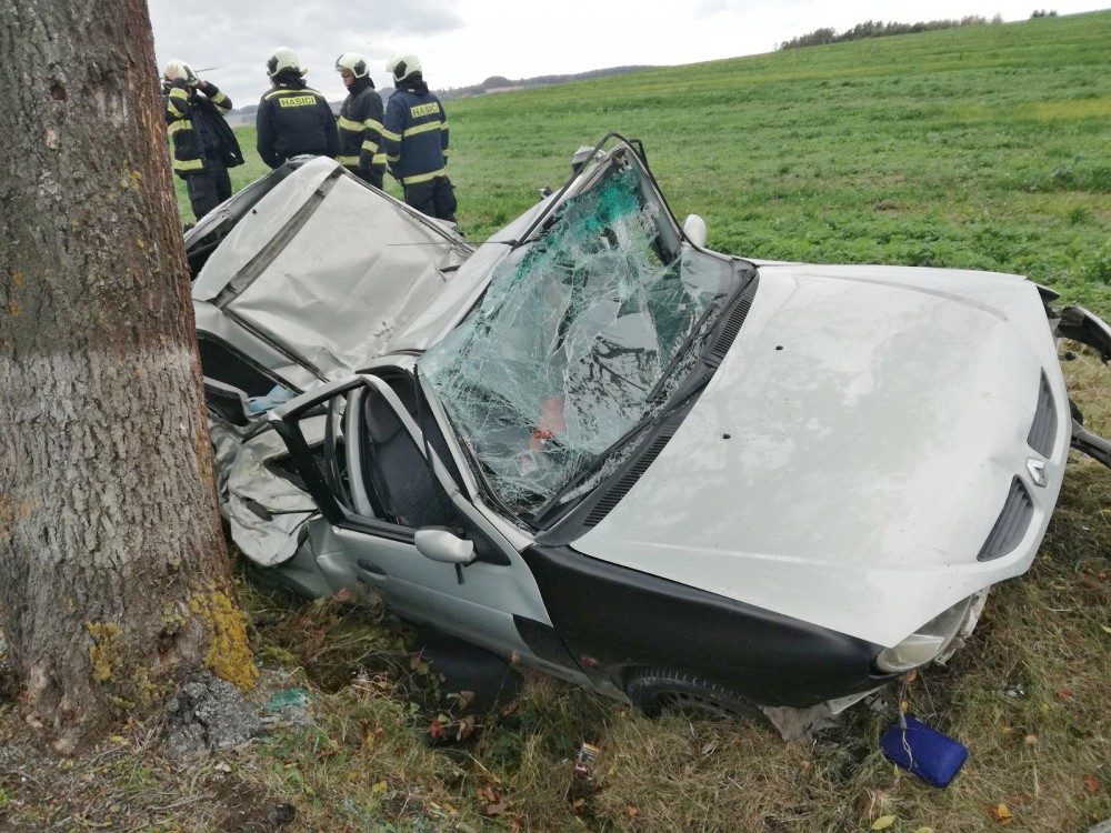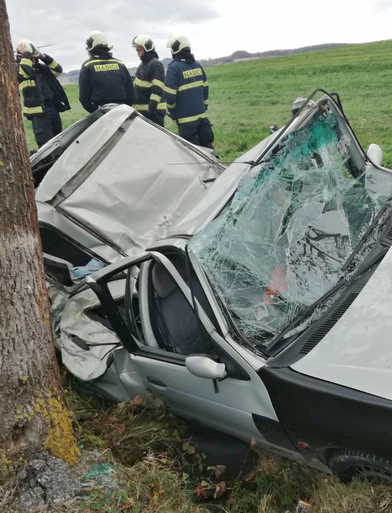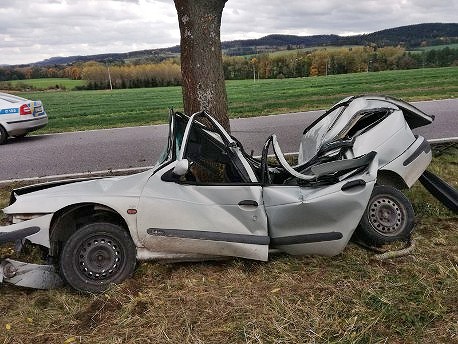 Řidič ve vysoké rychlosti své auto nezvládl a havaroval. Projel příkopem a skončil ve stromě