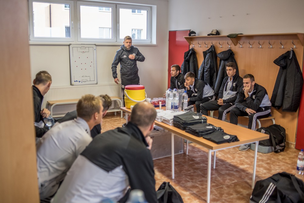 Šatna SK Dynamo České Budějovice při derby na začátku porady