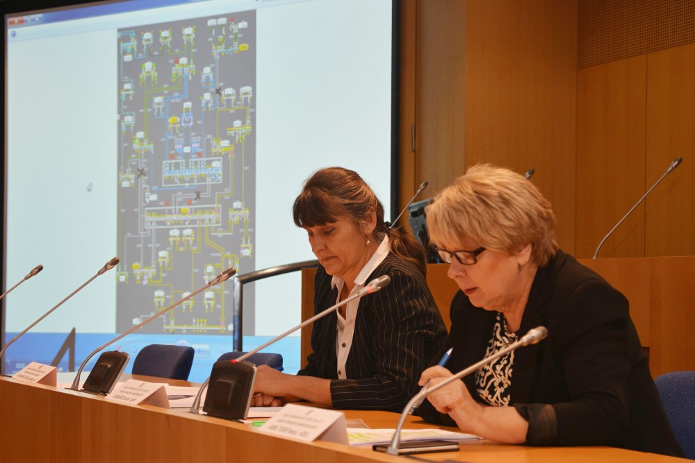 Hejtmanka Jihočeského kraje Ivana Stráská (vpravo) a tajemnice krizového štábu kraje Marta Spálenková při cvičení Blackout 2017.