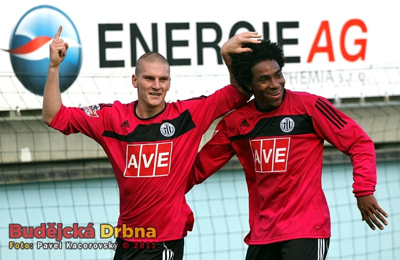 Zdeněk Ondrášek se raduje po boku Sandra z jednoho svého gólu