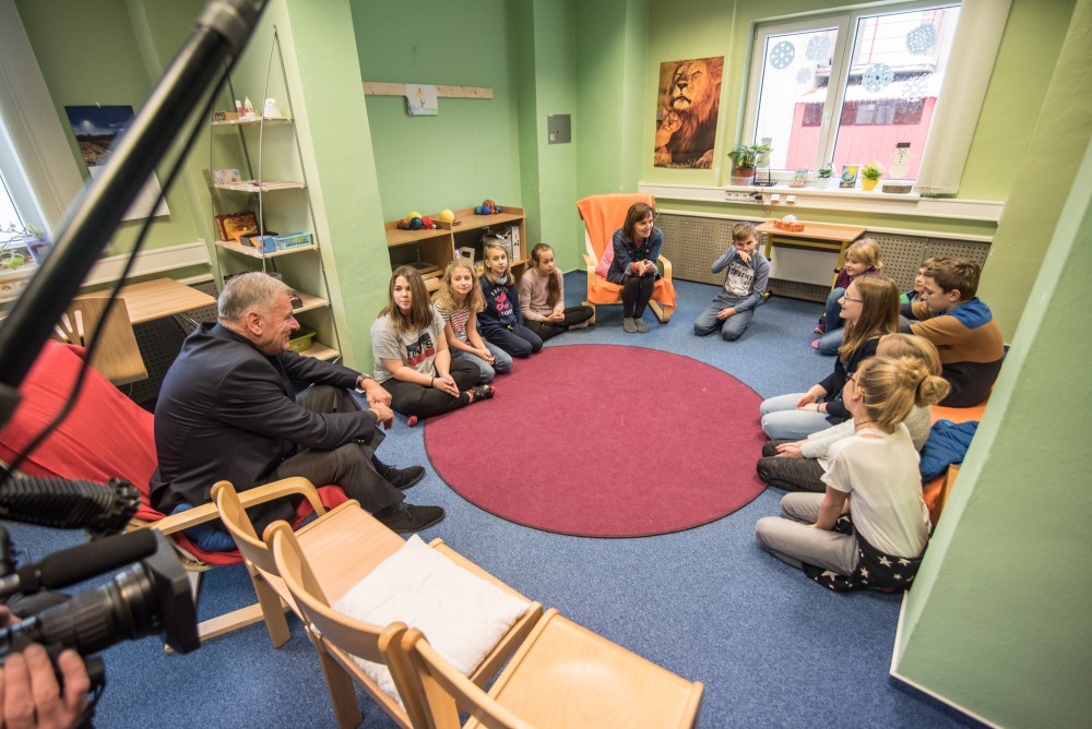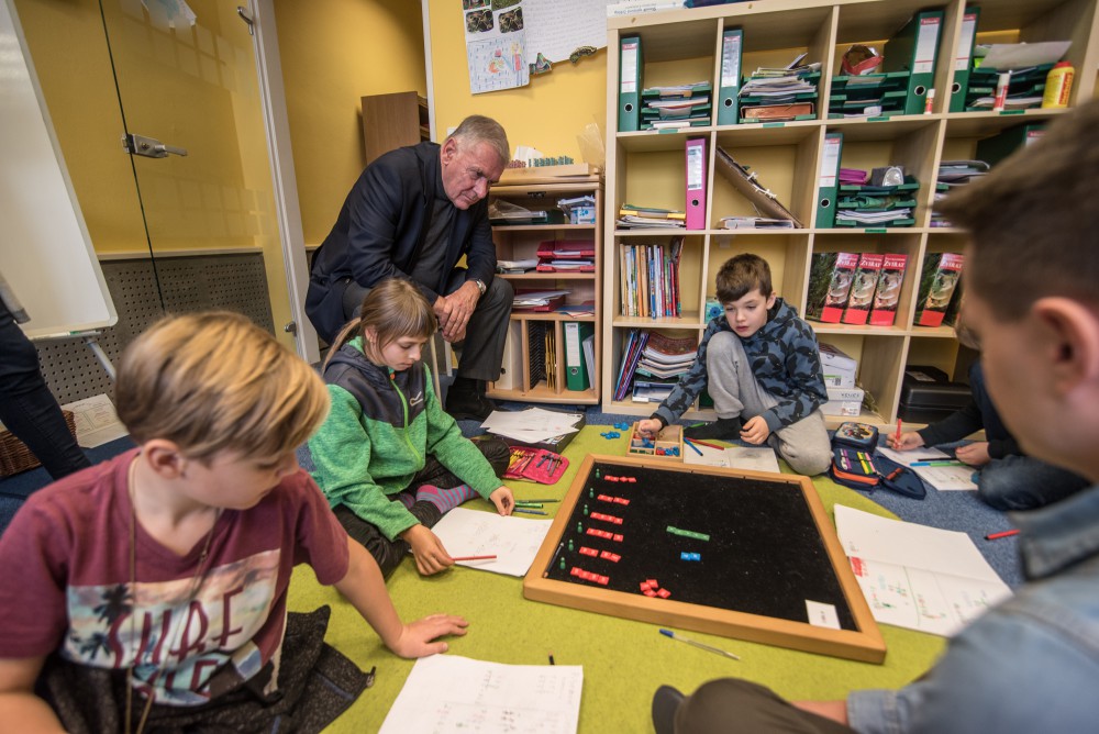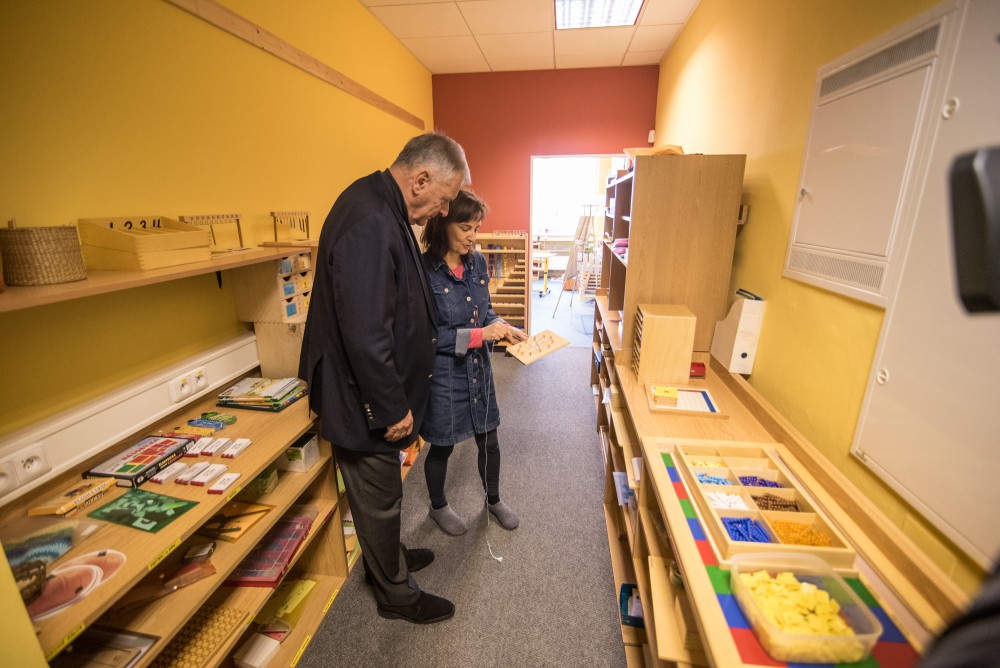 Děti jsou i při učení šťastné, neskrýval nadšení z montessori školy kandidát na prezidenta