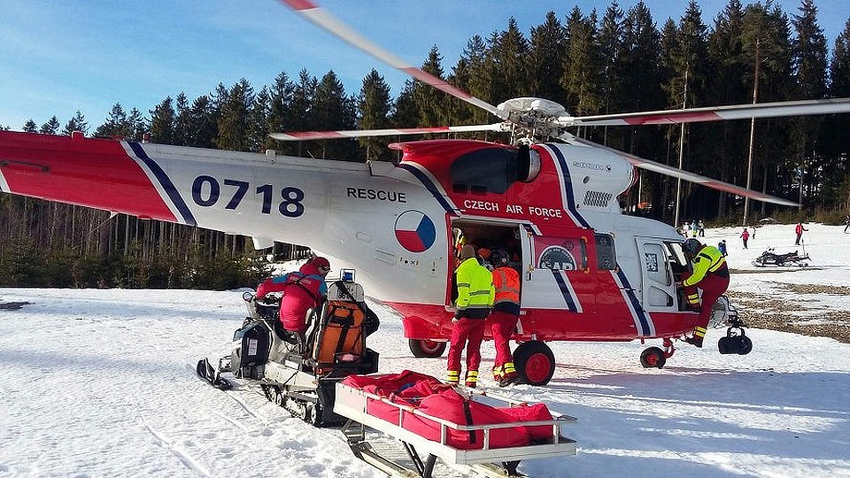 Vrtulník transportoval vážně zraněnou lyžařku z Kramolína do českobudějovické nemocnice.