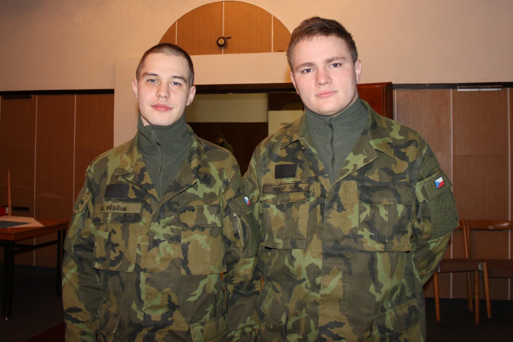 Četař Adam Pěgřim a desátník Kryštof Kot (zleva) nastoupili v úterý 2. ledna k vojenskému útvaru do Strakonic.