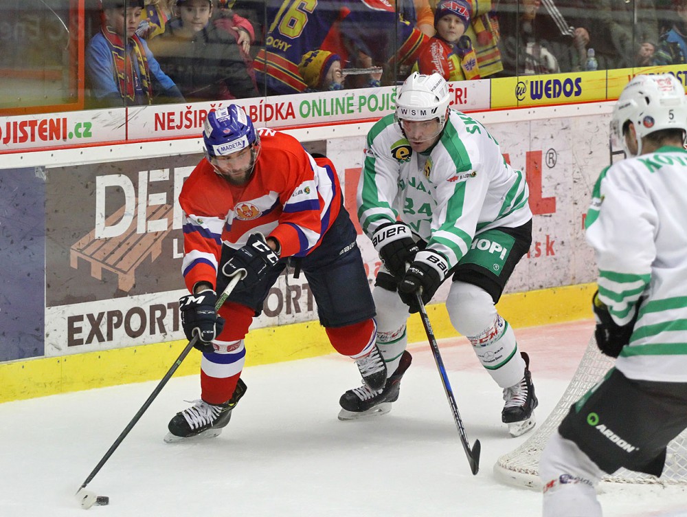 Navrátilec do domácí sestavy Martin Novák atakovaný Václavem Skuhravým
