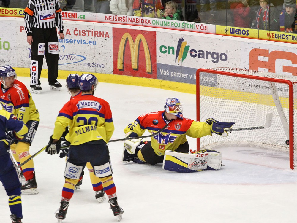 David Gába inkasoval pouze jedinkrát. Ve třetí třetině jej překonal pohotovou střelou Milan Procházka