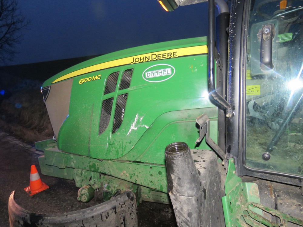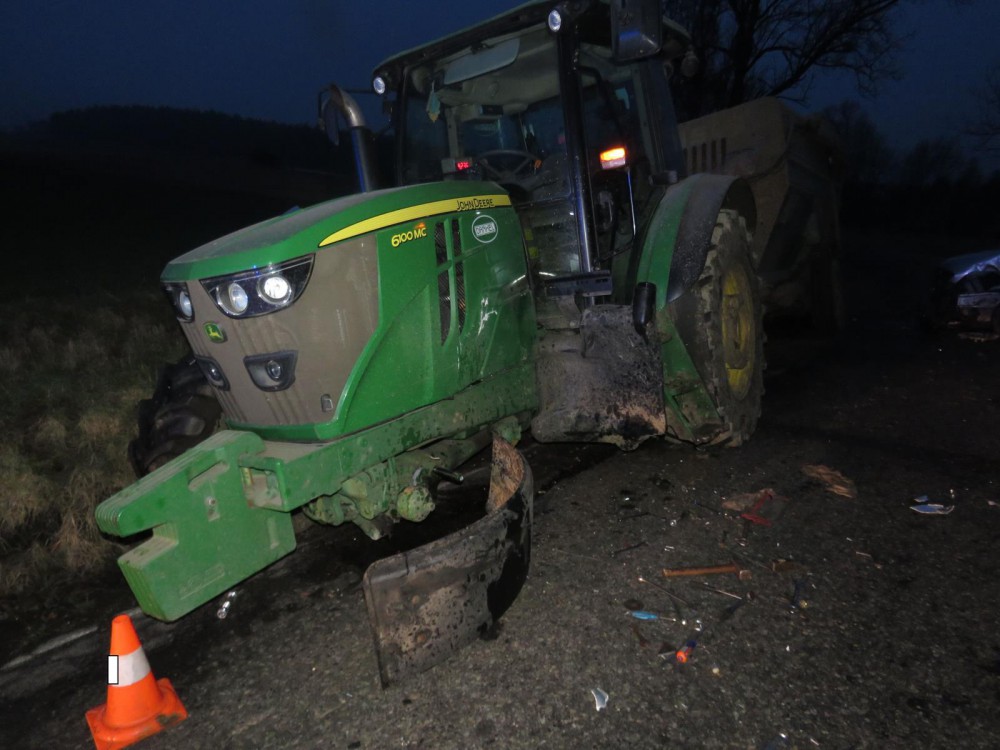 Písečtí dopravní policisté vyšetřují nehodu osobního automobilu a traktoru.