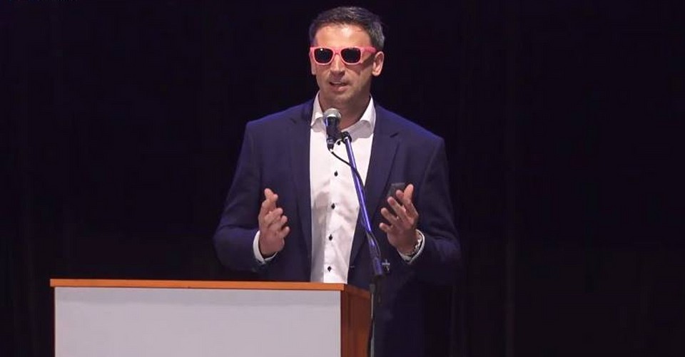 Zimola rozdával na sjezdu ČSSD růžové brýle. Sám si je nasadil při proslovu za řečnickým pultíkem.