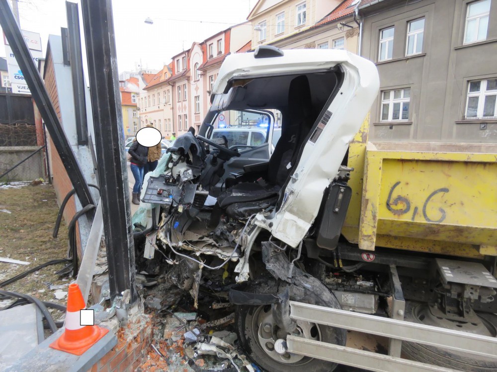 Na Mánesovce byla při dopravní nehodě poničena protihluková zeď, řidič utrpěl lehká zranění