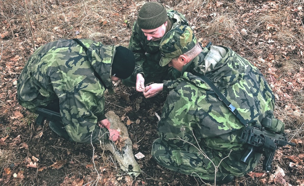 Vojáci nacvičovali, jak poskytnout první pomoc zraněným v bojových podmínkách.