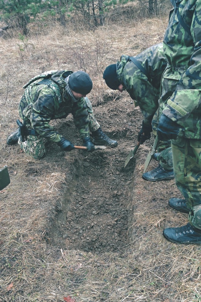 Cvičící v rámci ženijní přípravy budovali okopy.