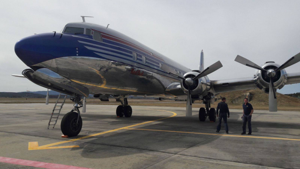 Na letišti v Plané přistával letoun Douglas DC-6 z Red Bull stáje