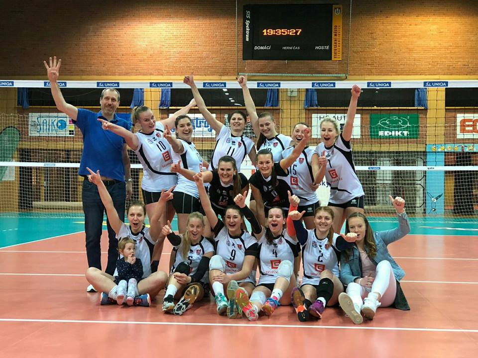 Budějcké volejbalistky vyhrály i baráž o postup do extraligy. Porazily favorizované Brno