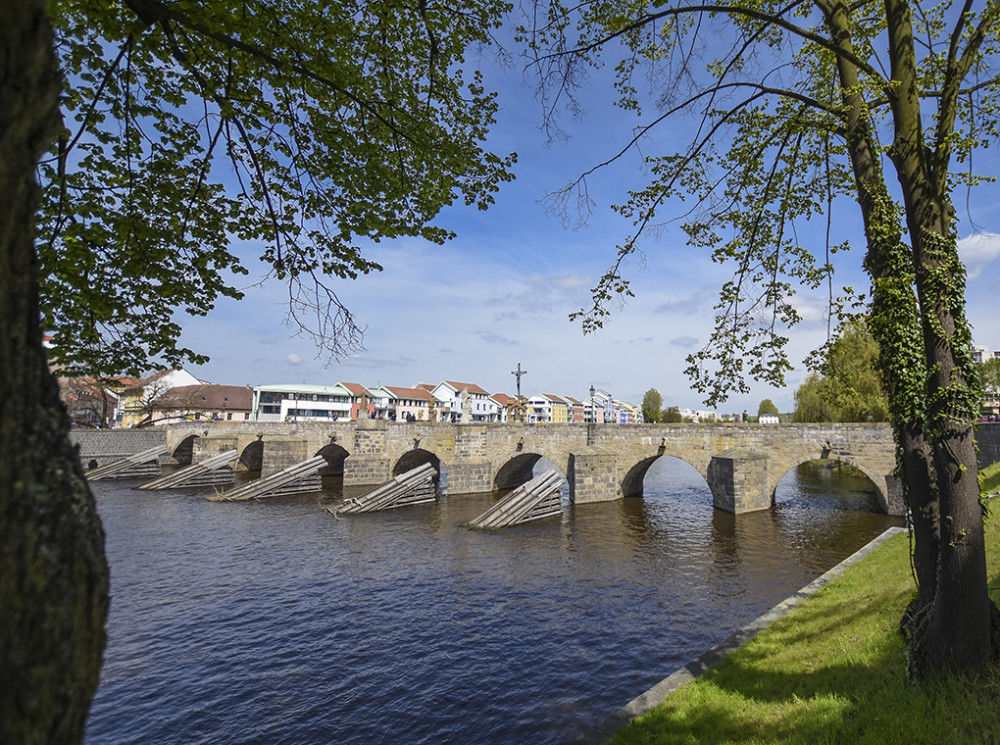 Policisté pátrají po vandalovi, který poškodil sochu na Kamenném mostě v Písku