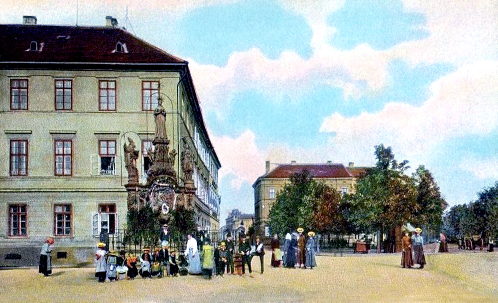 Sousoší P. Marie na Mariánském náměstí po roce 1900.