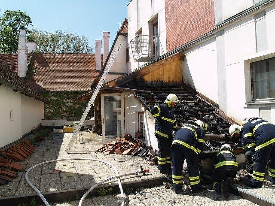 Hasiči vyjížděli do Třeboně k hořící střeše
