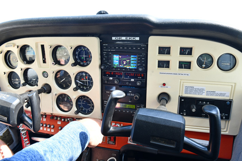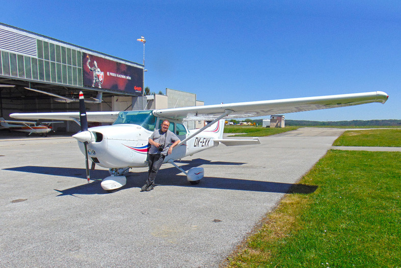 Oceňte Milanovu odvahu, protože nemá rád výšky, ale pro hezkou fotografii zapomene i na strach a z toho okénka Cessny 172 se nakonec přece jen vykloní.