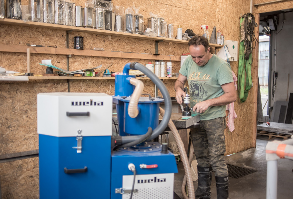 Mistr výroby kamenictví Memory Luboš Hes při práci.