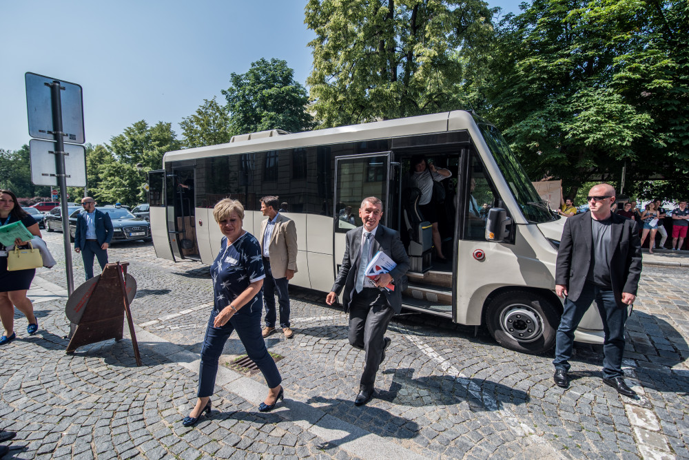 Vláda v demisi před Jihočeským muzeem.