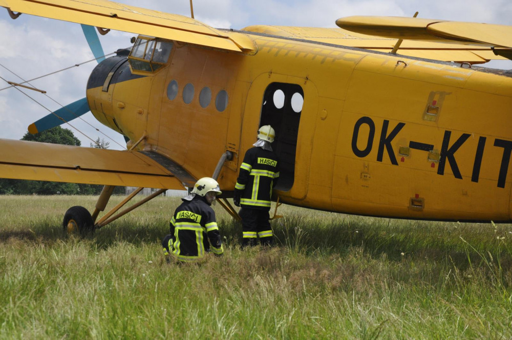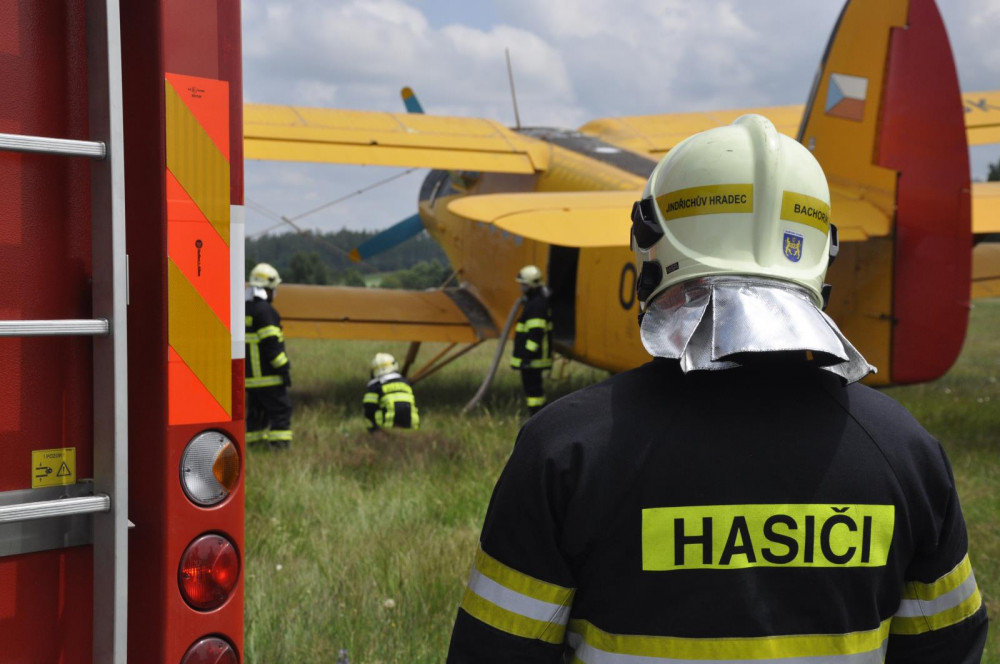 Jihočeští hasiči usedli do práškovacího letadla. Cvičili letecké hašení.