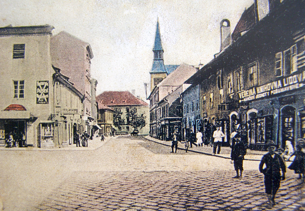 Ulice Karla IV. od Kněžské směrem na Senovážné před rokem 1907.