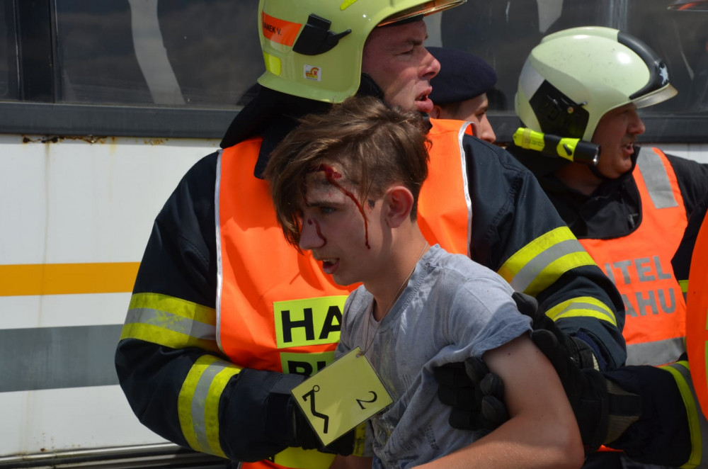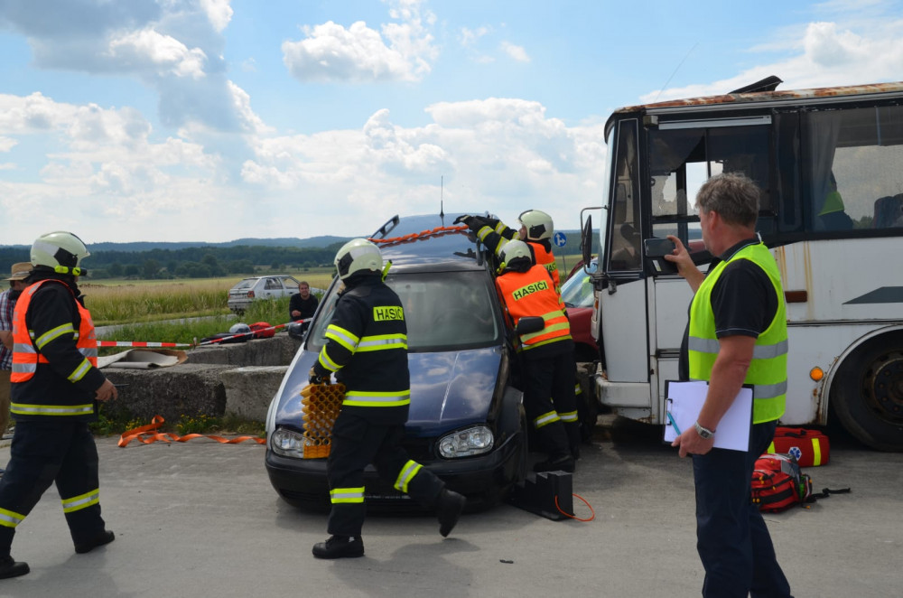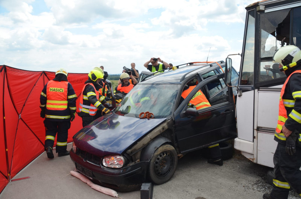 FOTO: Hasiči, policisté a zdravotní záchranáři nacvičovali zásah u nehody autobusu