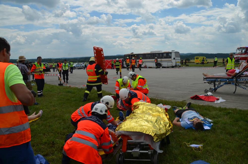 Hasiči, policisté a zdravotní záchranáři nacvičovali zásah u nehody autobusu.