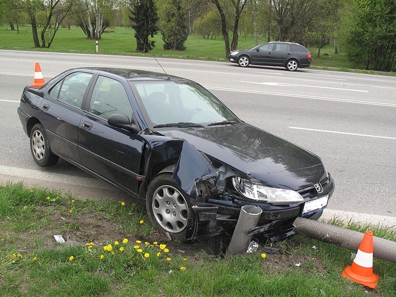 Nejhůře dopadla seniorka za volantem peugeotu. Náraz ji odmrštil na stožár vlajky