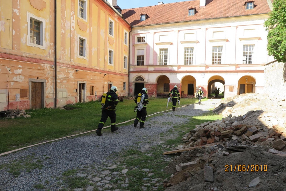Hasiči absolvovali prověřovací i taktická cvičení na zámku i ve škole.