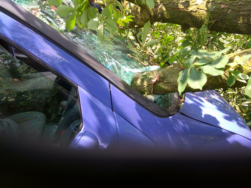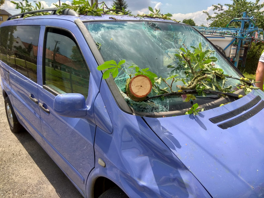 U Tábora spadl strom na auto. Nehoda blokovala silnici, ale obešla se bez zranění