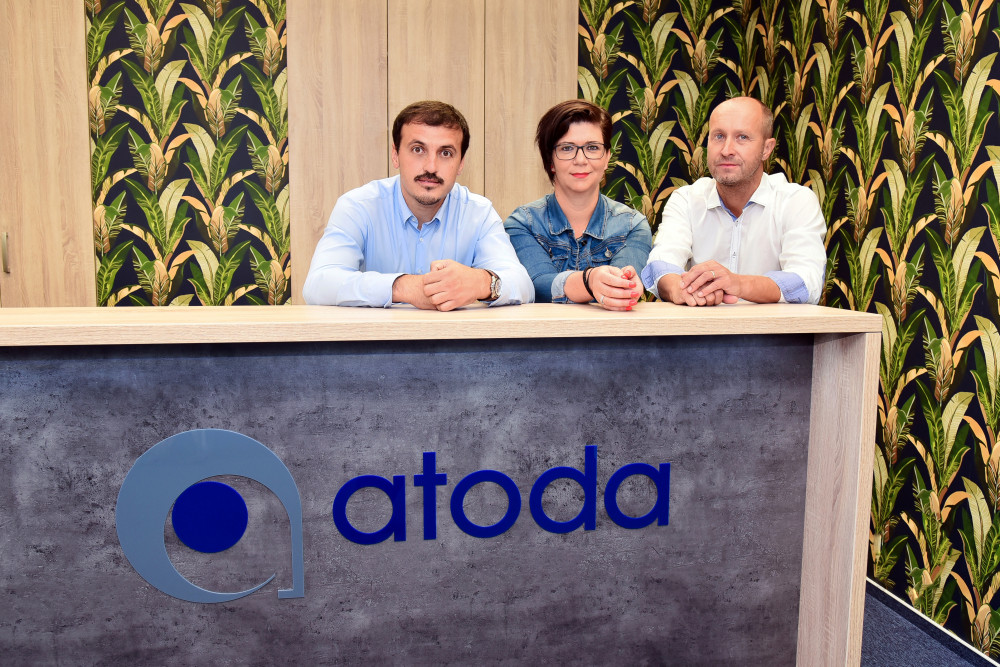 Na snímku zleva jsou: ředitel call center ATODY Václav Kroneisl, manažerka pro provoz českobudějovického call centra Jitka Bezemková a ředitel společnosti ATODA Tomáš Kruppa.