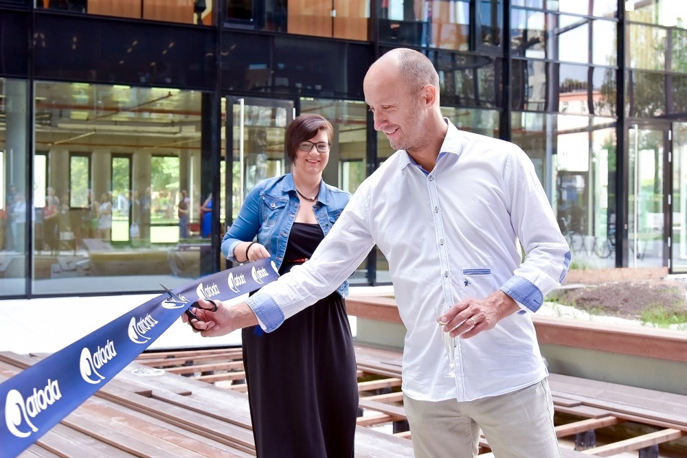 Společnost ATODA našla útočiště v nemodernější českobudějovické budově, v Pianu. Slavnostně začala v administartivní budově u křižovatky ulic Mánesova a Lická fungovat v pondělí 9. července.