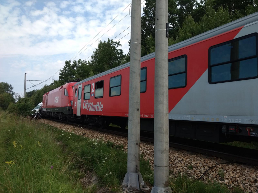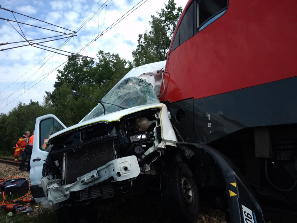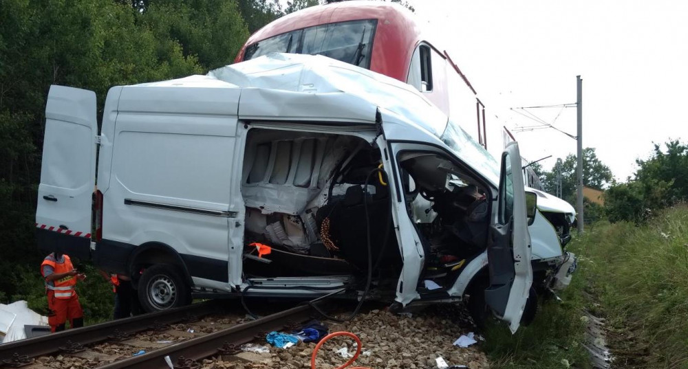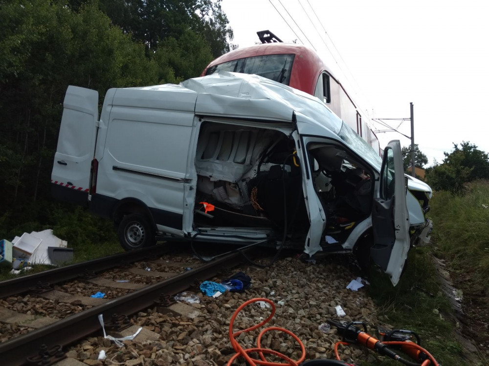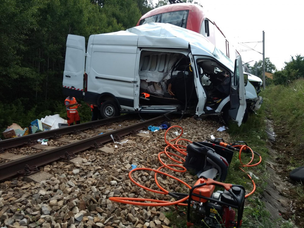 Řidič dodávky, která se u Kamenného Újezdu střetla s vlakem, v nemocnici zemřel