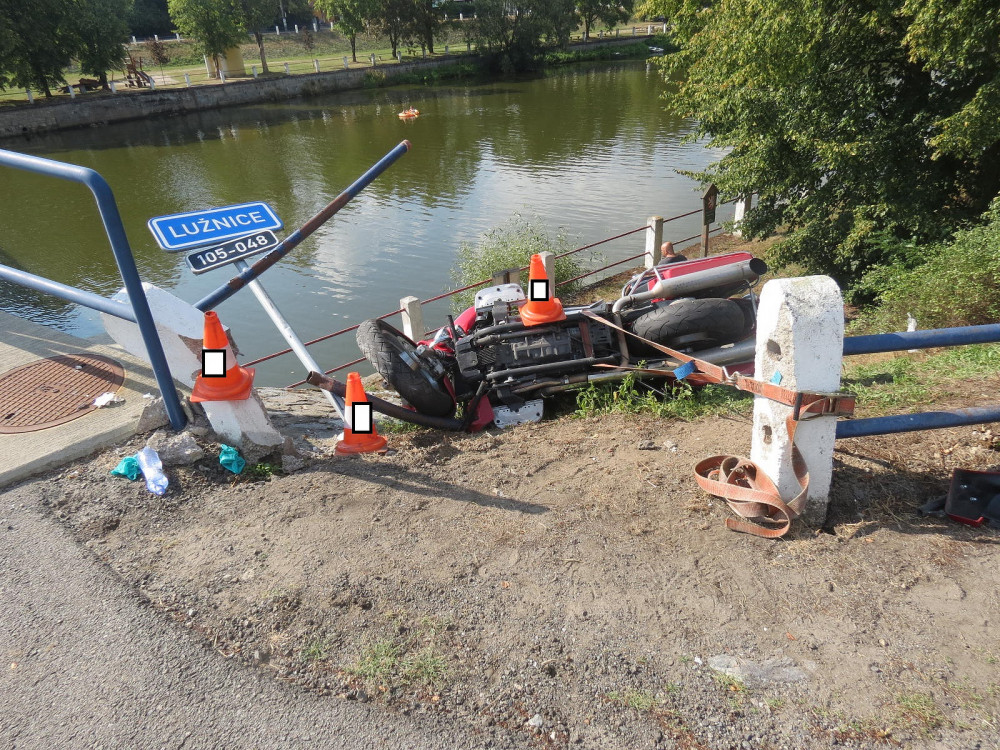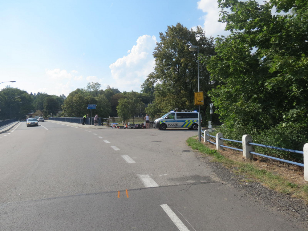 Řidič motorky havaroval v Kolodějích nad Lužnicí a i se spolujezdcem skončil v řece.