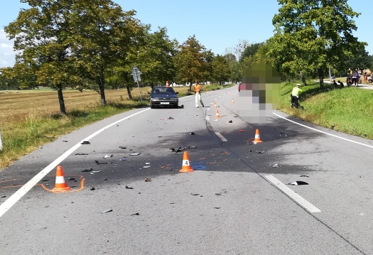 Mezi Hlubokou nad Vltavou a Municemi se dnes, v sobotu 11. srpna, dopoledne čelně srazili dva motorkáři. Oba dva bohužel zemřeli.