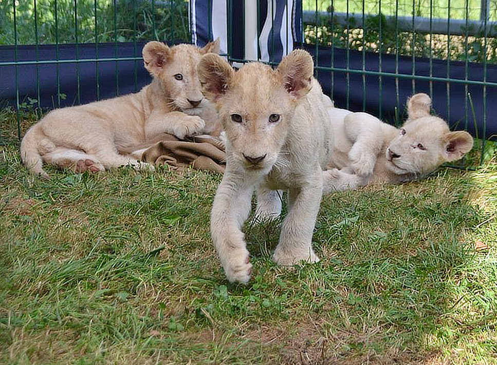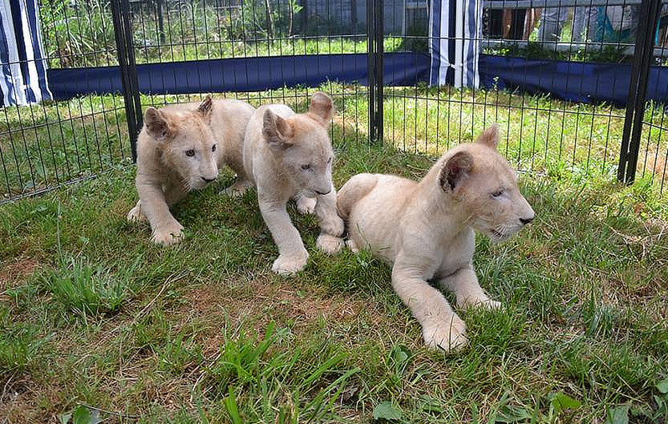 VIDEO: Dvorecká zoo pokřtila tři dvouměsíční koťata vzácného bílého jihoafrického lva