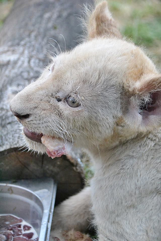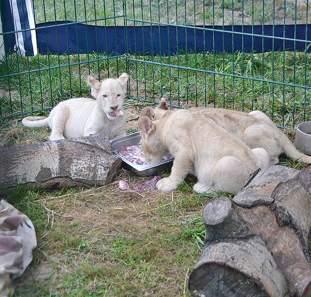 Dvouměsíční koťata vzácného bílého jihoafrického lva v Zoo Dvorec.