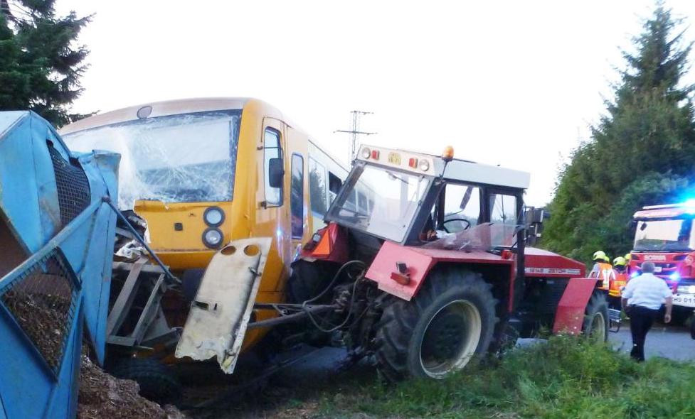 Další nehoda na Písecku. U Čížové se srazil osobní vlak s traktorem