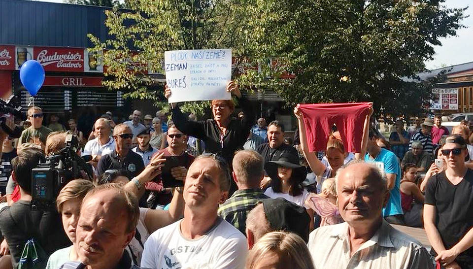 Proti prezidentovi Zemanovi protestovalo při zahájení budějcké Země živitelky několik lidí.