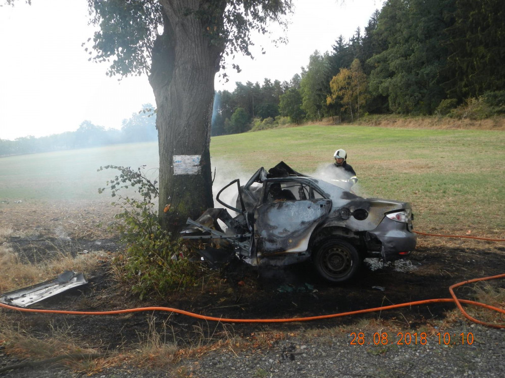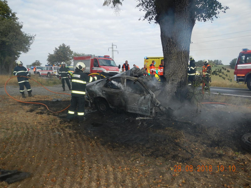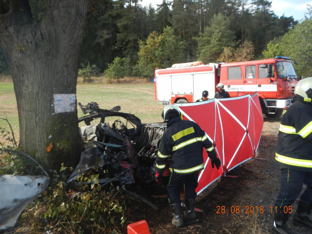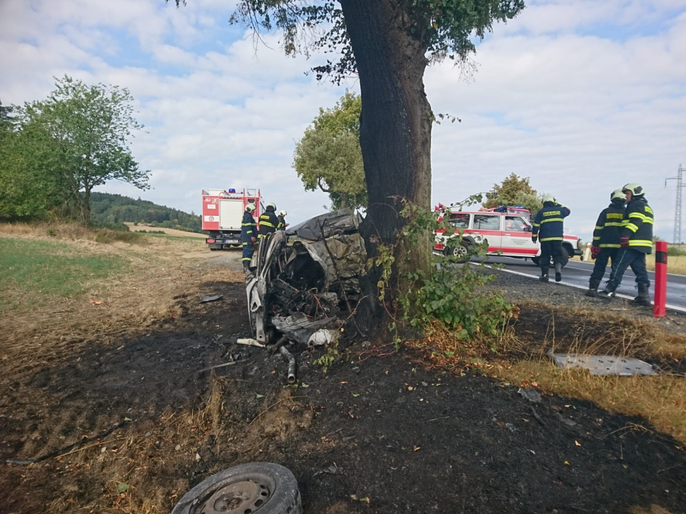 U Drahonic narazilo auto do stromu. Řidič na místě zemřel