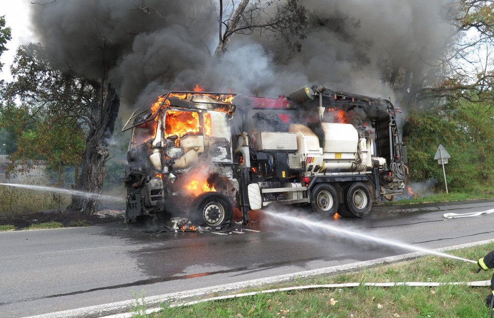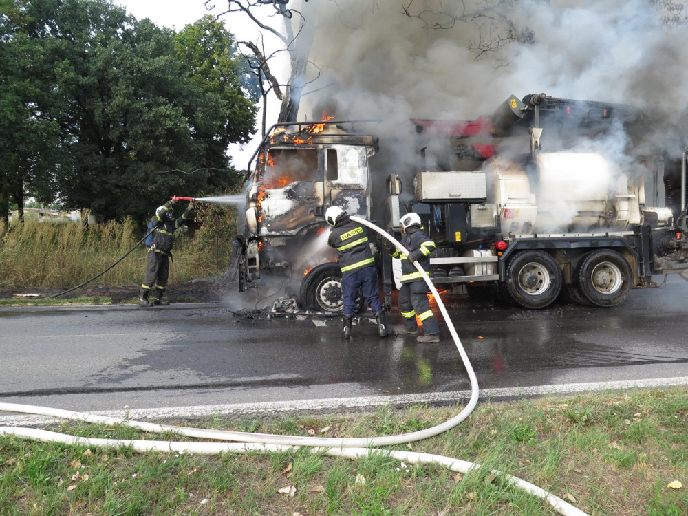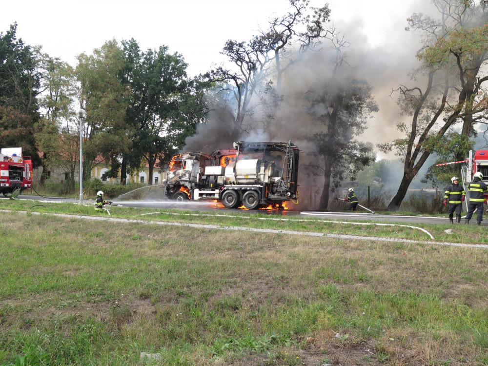 Přímo v Písku shořel štěpkovač za sedm milionů korun.
