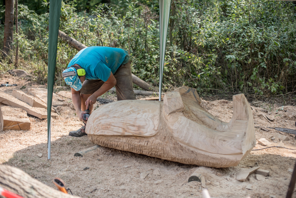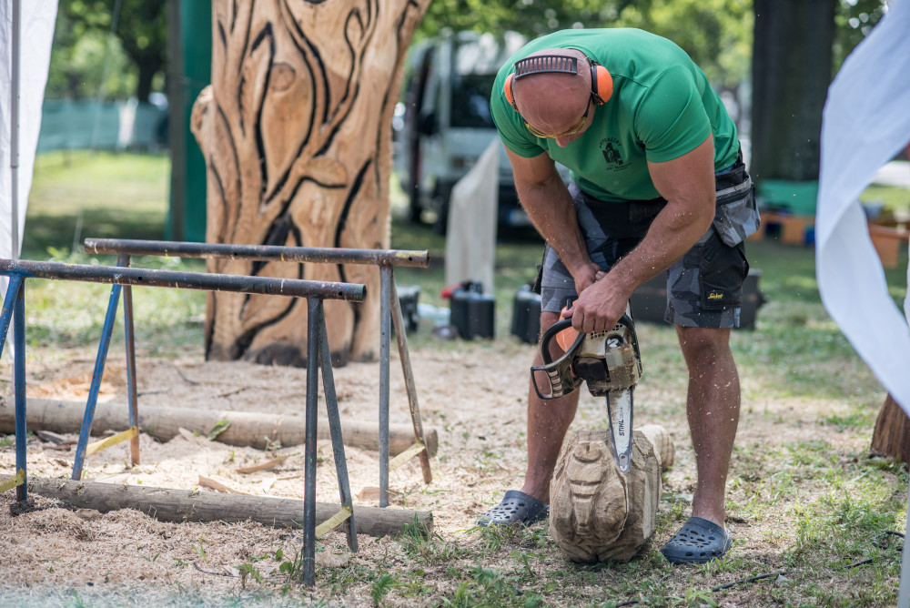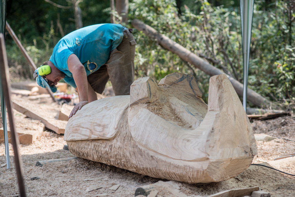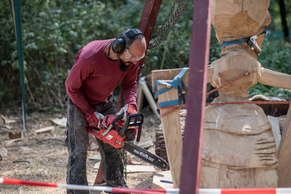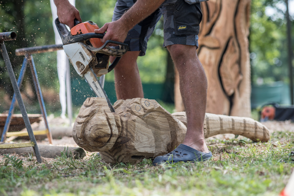 Před areálem zoo Hluboká probíhá dřevosochařské sympozium pod názvem Obři z trávy.