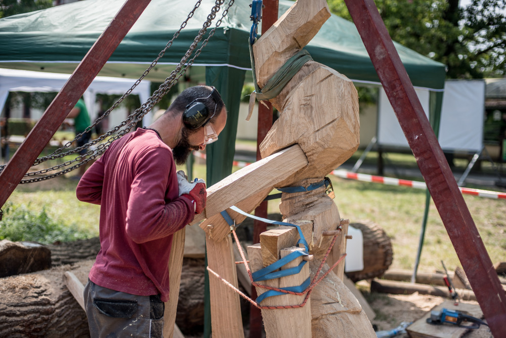 Před areálem Zoo Hluboká probíhá dřevosochařské sympozium pod názvem Obři z trávy.
