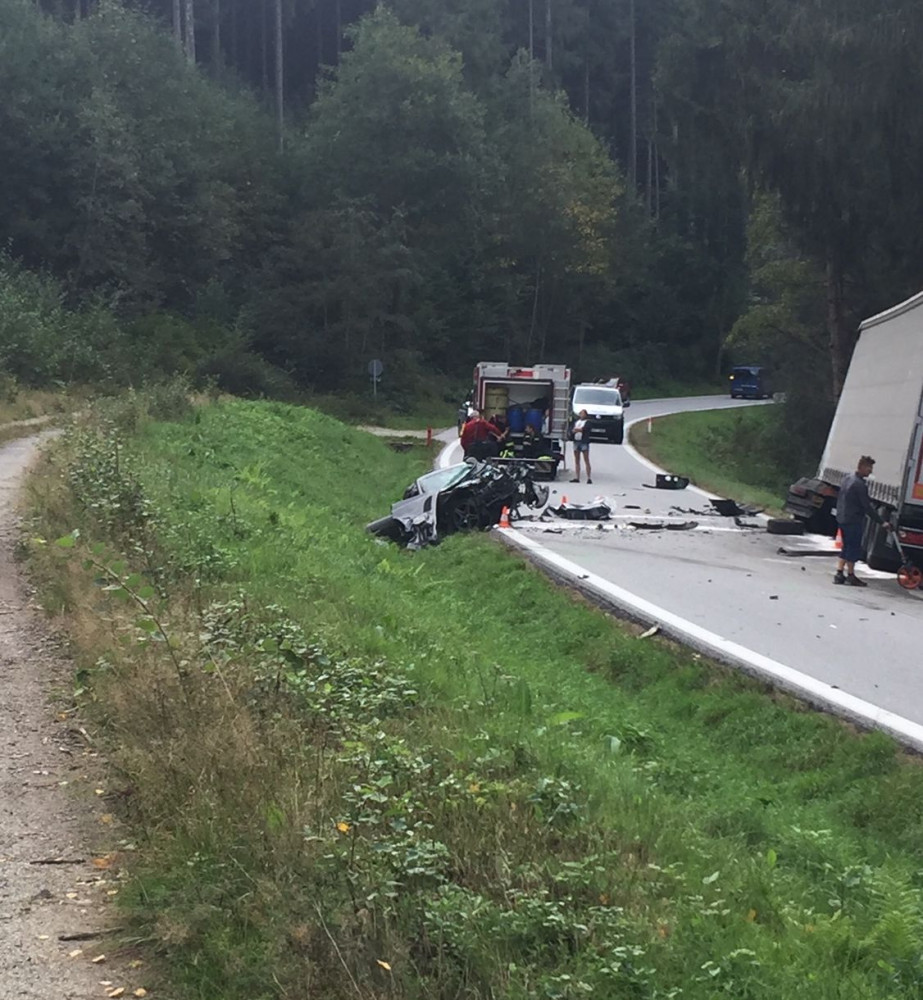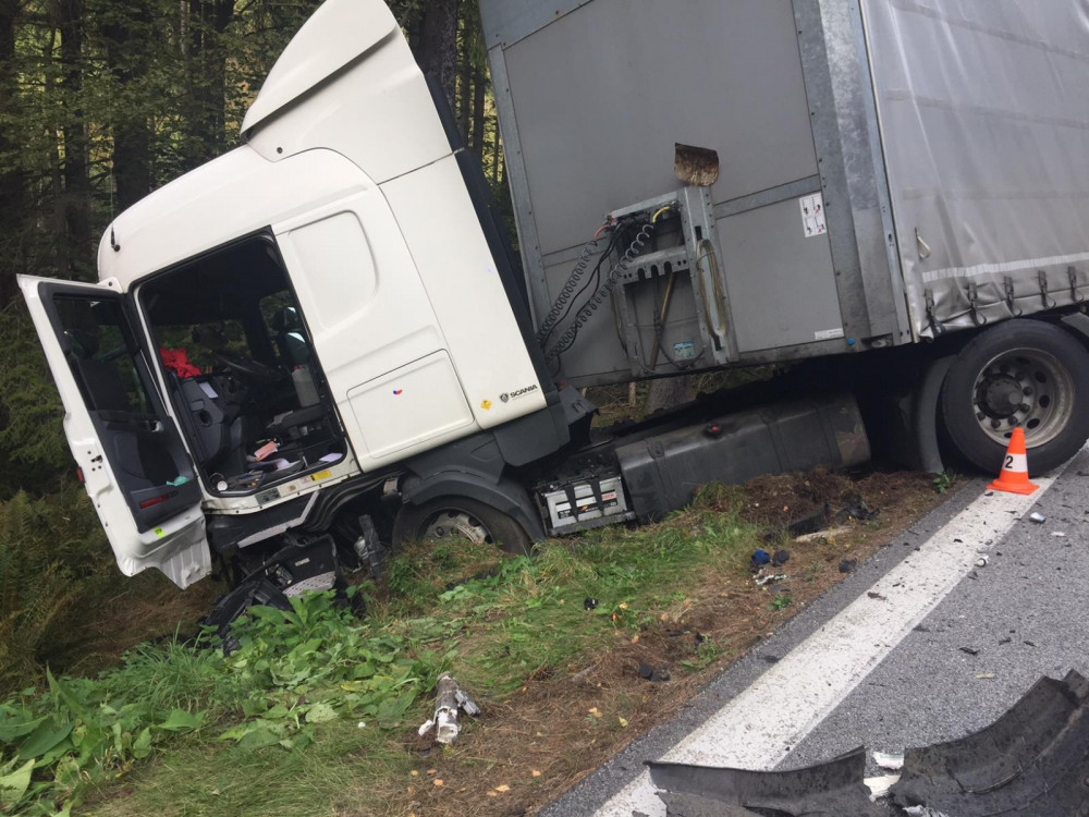 Nehodu náklaďáku s osobním autem u Rožmberku nepřežil řidič jednoho z vozů