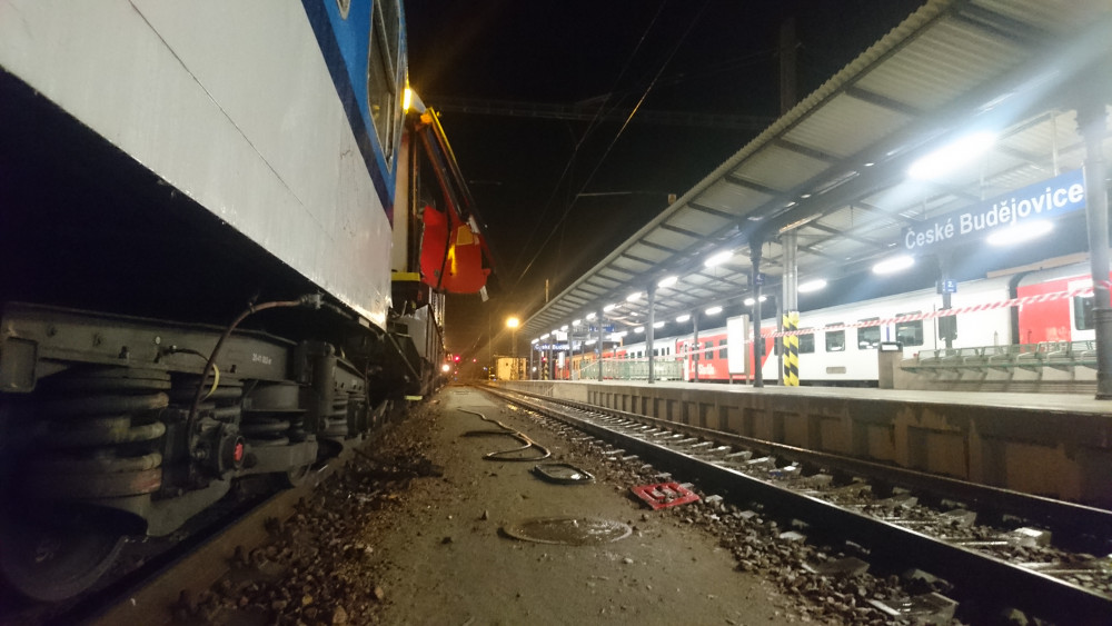 Na nádraží v Českých Budějovicích se srazila lokomotiva s odstavenými vagony.