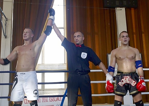David Makovička jako vítěz zápasu na amatérském MMČR v Muay Thai