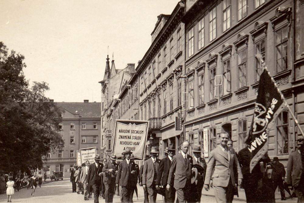 Třída Na sadech s průvodem kolem Besedy před rokem 1933.