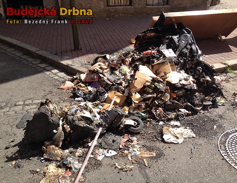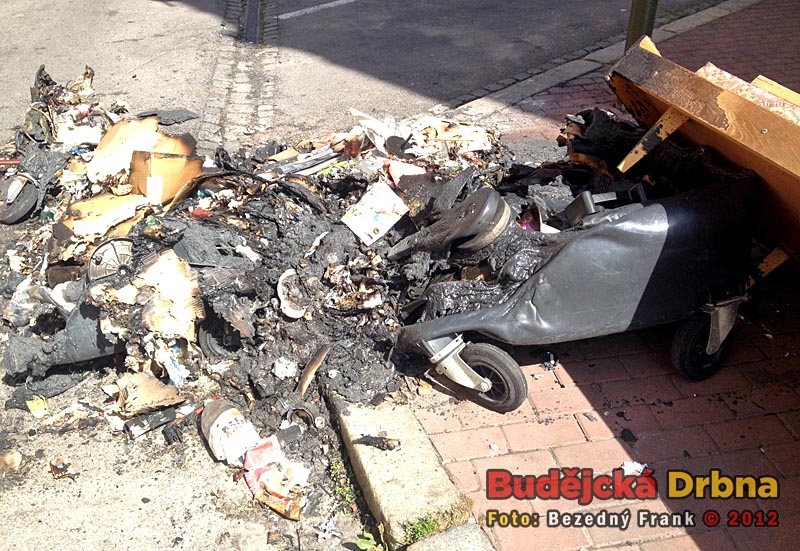 Plameny z hořících kontejnerů zasáhly i parkující auto
