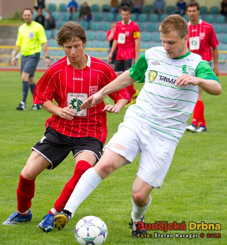 Největší šanci Roudného měl v první půli zápasu proti Dražicím kapitán Libor Matoušek (vpravo)