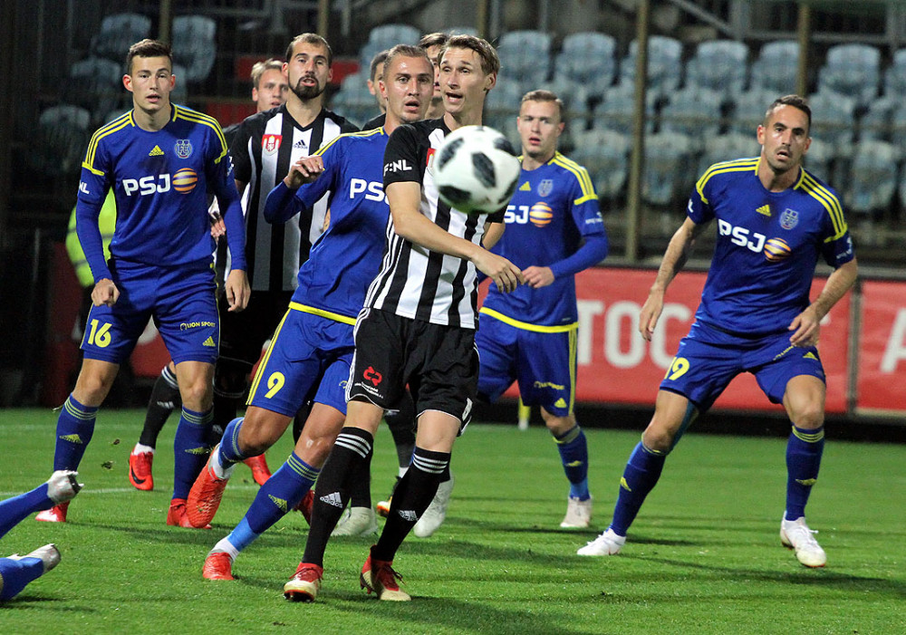 Souboj tělo na tělo mezi Matějem Mršičem a Vladislavem Levinem posoudil rozhodčí jako nedovolený zákrok domácího štírka