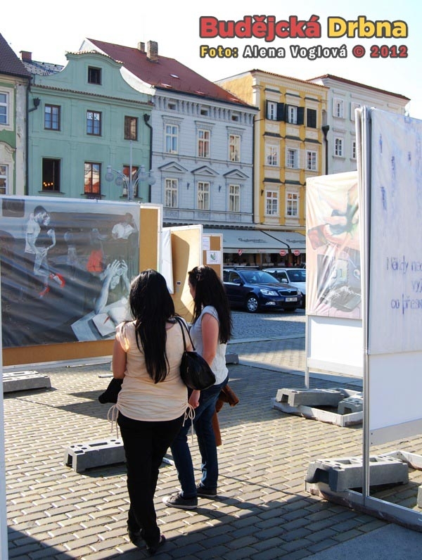 Studenti obdivují plátna na náměstí Přemysla Otakara II.